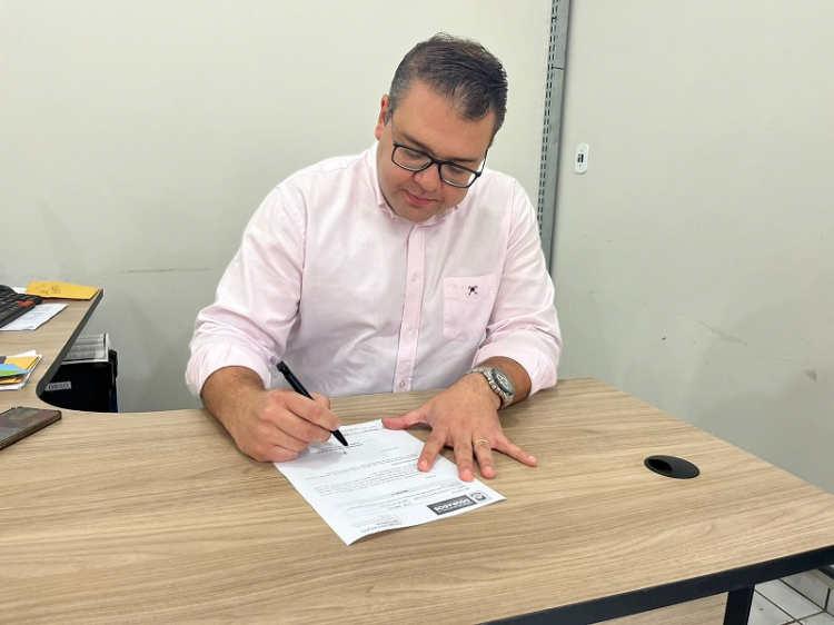 Alan Guedes assina convênio (Foto: Assecom).