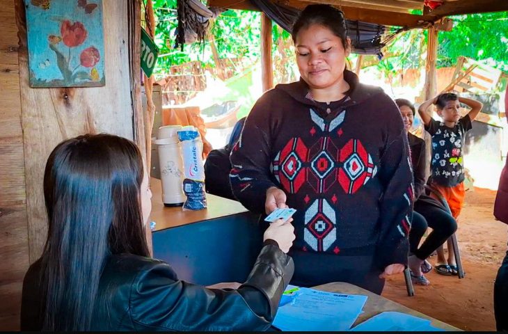 Outra a receber o cartão foi Suellen Mantovani Valejo. Ela mora com o marido e três filhos, de 5 e 6 anos e de 3 meses de idade. O esposo é pedreiro, mas não tem emprego fixo e falta dinheiro para comprar as coisas, explica a indígena. “Meu esposo trabalha, mas ganha pouco. Agora com o cartão dá pra comprar fralda para meu filho, dá de comer para ele”.