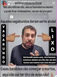 “Aqueles vagabundos deram sorte ainda. Vai invadir junto, cara. Vira homem. Estamos doidos para lhe dar um tiro nessa sua cara de pau. Esses bandidos vão começar a morrer, aqui não vai ter tiro de aviso, não”, finalizou ele ao lado de um emoji em referência ao gesto de mostrar o dedo do meio a alguém.