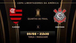 O confronto entre Flamengo e Corinthians, no Maracanã, pelas quartas de final da Copa Libertadores da América, acontece nesta terça-feira (9). O time carioca tem uma vantagem de dois gols sobre o clube paulista.