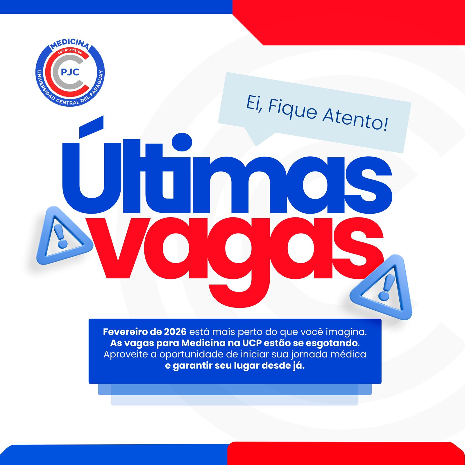 Estudantes que sonham em ingressar no curso de Medicina ainda têm uma oportunidade para iniciar a graduação no primeiro semestre de 2026. A Universidade Central do Paraguai (UCP), em Pedro Juan Caballero, está com as últimas vagas disponíveis para o curso de Medicina 2026.1.