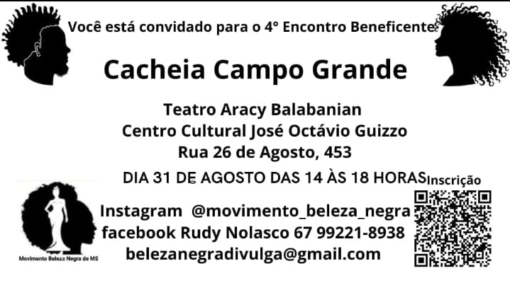 No próximo dia 31 de agosto (domingo), das 14 às 18 horas, será realizado o 4º Encontro Beneficente “Cacheia Campo Grande”, promovido pelo Movimento Beleza Negra em parceria com a Legião da Boa Vontade (LBV). O evento é aberto a todos que amam e valorizam cabelos cacheados e crespos e será um momento para troca de experiências e para celebrar a diversidade e a beleza natural de cada cacho.